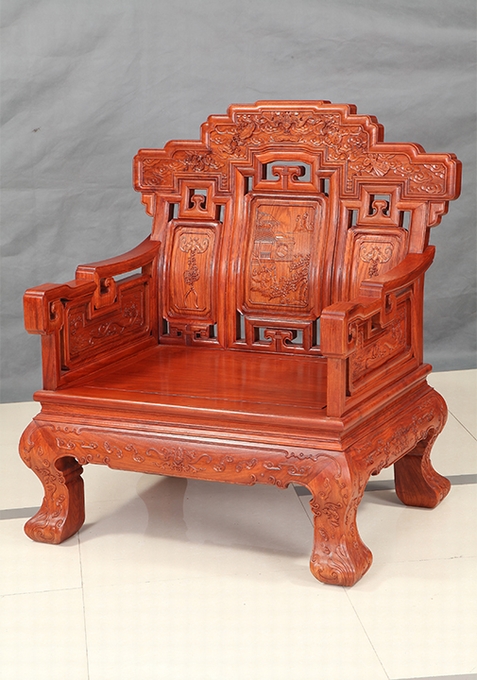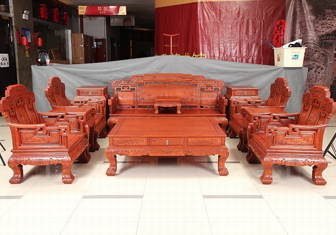 而今天,我們福林堂紅木要為大家介紹的這一款沙發(fā)——祥云寶座沙發(fā),即是這樣一款以之祥云為主要裝飾圖案,附之以蝙蝠、銅錢、磬(Qing)、八寶、行龍紋、魚紋、如意等多種象征寓意紋飾組合而成,另外沙發(fā)整體之外觀仿照古代帝王之寶座外觀設(shè)計,顯得十分地氣派張揚(yáng)與尊貴,十分適合給那些身份及地位都十分顯赫、重要的人物使用,是一座尊貴的席位,在家中擺放之就好比如置入一座寶座一番,給人以一種沉穩(wěn)、大氣、威嚴(yán)之感受,而這一類風(fēng)格之家居也正是當(dāng)下仿古式紅木家具中應(yīng)用十分廣泛的一類,只不過它現(xiàn)在已經(jīng)不再顯得那么高高在上的了,而是可以配之以高幾、角幾與大平幾一起使用,感受上更覺舒適平和自然,成為一處可以與普通老百姓一起相陪作伴的普通家居陳設(shè)用品。