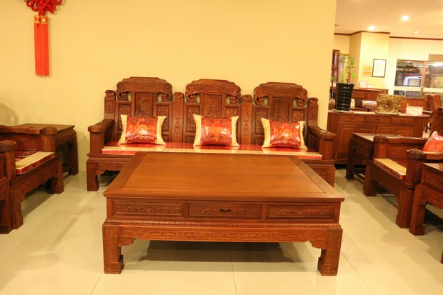 大家好,今天我們福林堂紅木要為大家介紹的這一款沙發(fā),其名字內(nèi)容較為通俗意賅——“豪華如意”?!昂廊A”之意:一是代表其所選用材質(zhì)——緬花的珍貴,二是因為那浮華鐫秀裝點(diǎn)紋飾的富麗;而如意則指的是這些紋飾在其內(nèi)部所承載的深厚寓意,這其中包含有喻以吉祥富貴吸財之意的大象紋、代表祥和福瑞之意的麒麟紋、還有寓帶五福象征不老不衰的梅花紋、以及擁有幸福之意的蝙蝠紋、銅錢、魚紋、銅鈴紋飾等等,它們以物喻情,這也是紅木家具不同于多數(shù)一般類普通家具的重要標(biāo)志所在,可以說,它們已經(jīng)不單單是一件生活中的家具品那么簡單,這其中也包含了所使用主人內(nèi)在的精神世界追求和意志情感寄托之需要。
