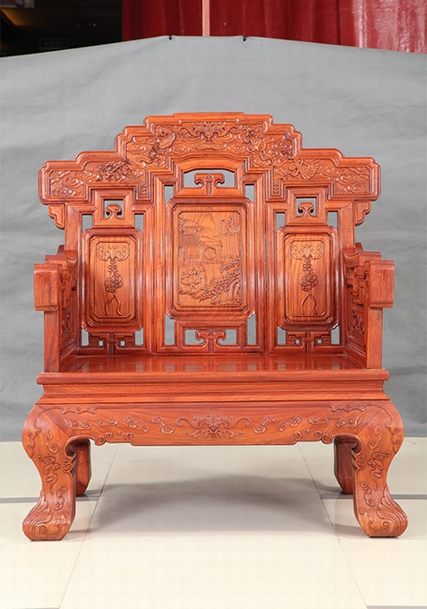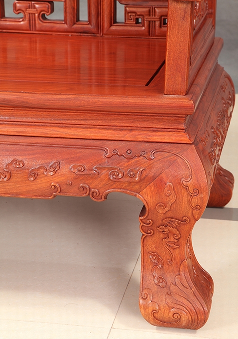 而今天,我們福林堂紅木要為大家介紹的這一款沙發(fā)——祥云寶座沙發(fā),即是這樣一款以之祥云為主要裝飾圖案,附之以蝙蝠、銅錢、磬(Qing)、八寶、行龍紋、魚紋、如意等多種象征寓意紋飾組合而成,另外沙發(fā)整體之外觀仿照古代帝王之寶座外觀設(shè)計,顯得十分地氣派張揚(yáng)與尊貴,十分適合給那些身份及地位都十分顯赫、重要的人物使用,是一座尊貴的席位,在家中擺放之就好比如置入一座寶座一番,給人以一種沉穩(wěn)、大氣、威嚴(yán)之感受,而這一類風(fēng)格之家居也正是當(dāng)下仿古式紅木家具中應(yīng)用十分廣泛的一類,只不過它現(xiàn)在已經(jīng)不再顯得那么高高在上的了,而是可以配之以高幾、角幾與大平幾一起使用,感受上更覺舒適平和自然,成為一處可以與普通老百姓一起相陪作伴的普通家居陳設(shè)用品。