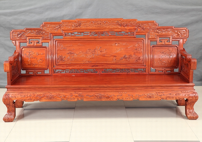 而整座沙發(fā)雕繪有的祥云圖案大體涵蓋了沙發(fā)上下內(nèi)外的各個角落,至下而上: