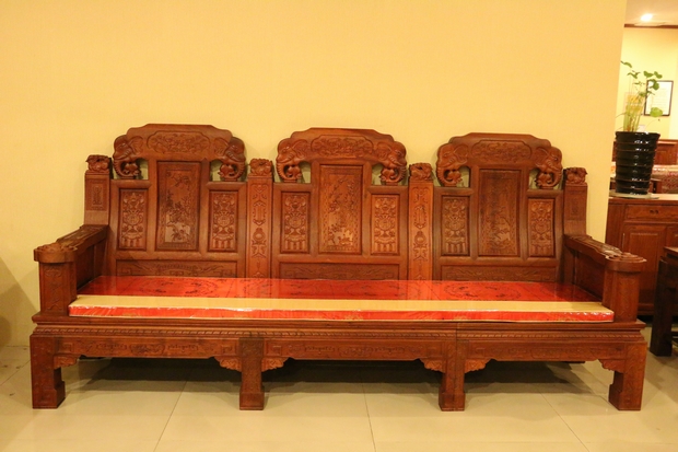 大家好,今天我們福林堂紅木要為大家介紹的這一款沙發(fā),其名字內(nèi)容較為通俗意賅——“豪華如意”?!昂廊A”之意:一是代表其所選用材質(zhì)——緬花的珍貴,二是因為那浮華鐫秀裝點(diǎn)紋飾的富麗;而如意則指的是這些紋飾在其內(nèi)部所承載的深厚寓意,這其中包含有喻以吉祥富貴吸財之意的大象紋、代表祥和福瑞之意的麒麟紋、還有寓帶五福象征不老不衰的梅花紋、以及擁有幸福之意的蝙蝠紋、銅錢、魚紋、銅鈴紋飾等等,它們以物喻情,這也是紅木家具不同于多數(shù)一般類普通家具的重要標(biāo)志所在,可以說,它們已經(jīng)不單單是一件生活中的家具品那么簡單,這其中也包含了所使用主人內(nèi)在的精神世界追求和意志情感寄托之需要。