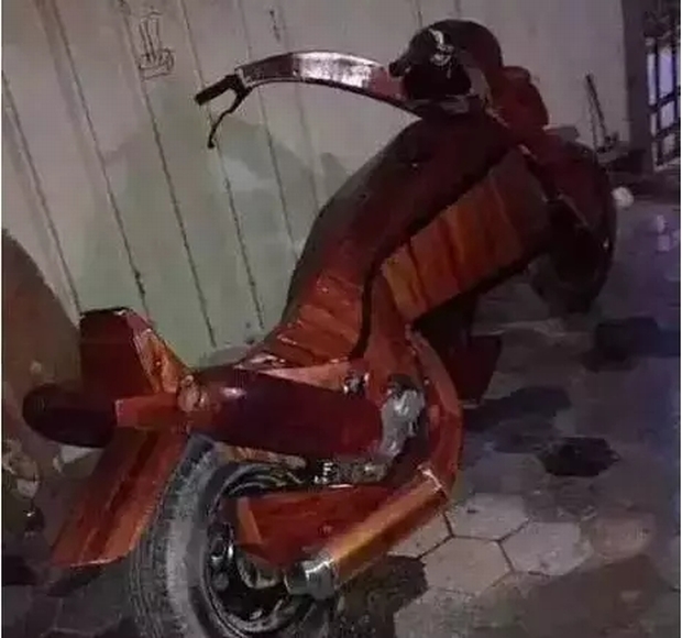 不過(guò),用紅木做的摩托車應(yīng)該沒(méi)什么卵用!不信?你放路邊停一晚上試試?明早一定沒(méi)了!